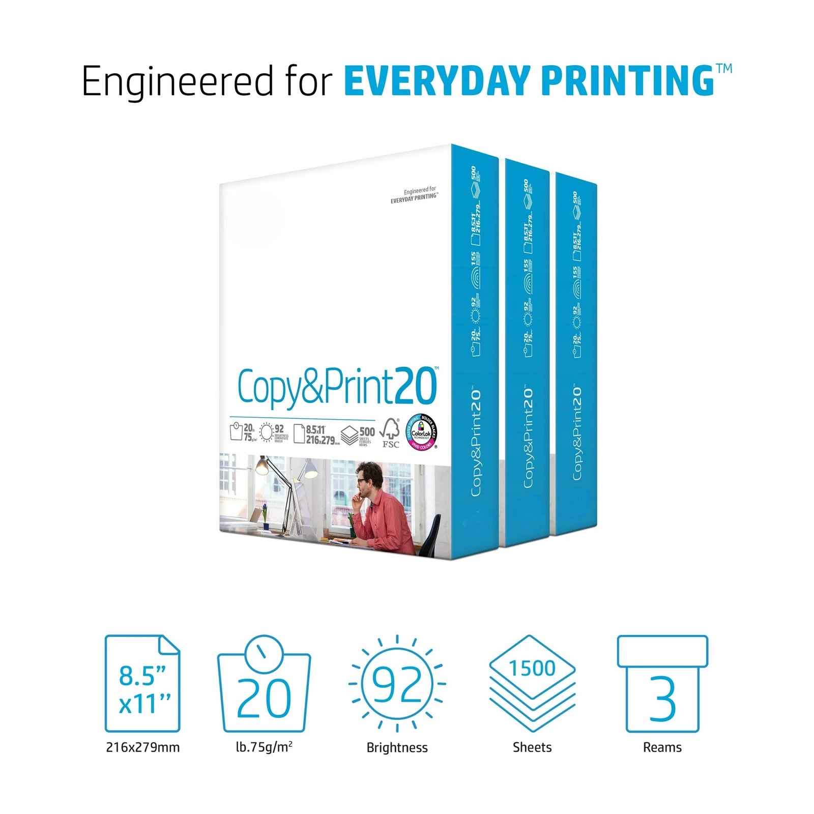 This Copy & Print Printer Paper is the ideal choice for all your printing tasks, from everyday documents to high-quality reports. Each sheet measures 8.5″ x 11″, providing a standard size perfect for home, office, or school use. With a total of 1,500 sheets across three reams, you’ll have plenty of paper for all your printing needs, ensuring you’re always ready for any project.